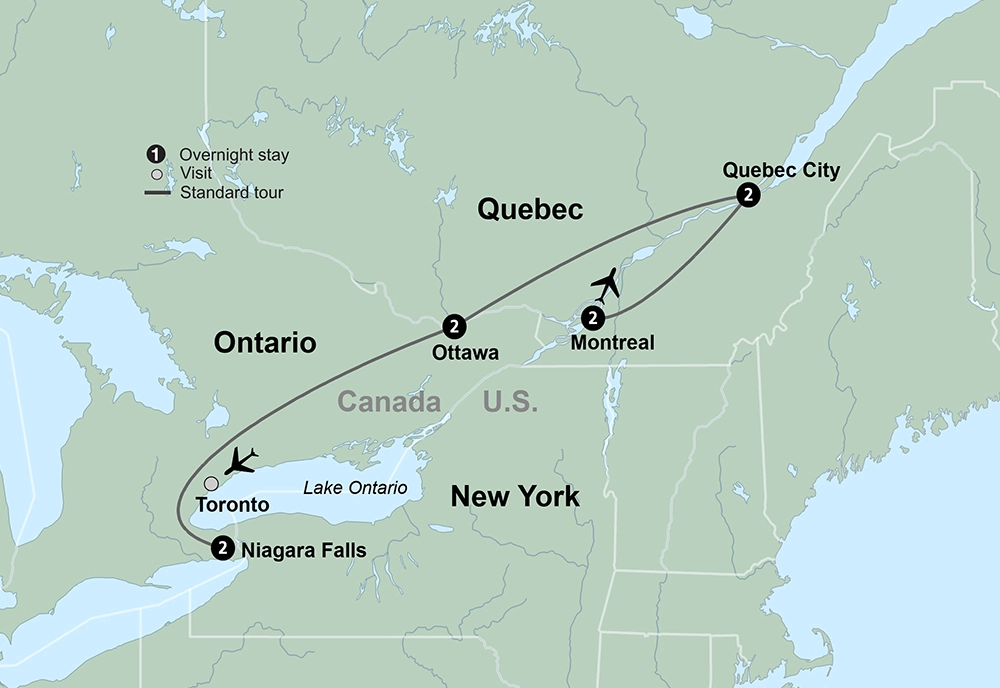 From the old-world style of Quebec City to the power of Niagara Falls, say bienvenue to Eastern Canada. Board a boat and experience Niagara Falls up close. Discover Niagara-on-the-Lake’s 300-year-old history of winemaking with a winery tour and tasting. Have a breakfast of regional specialties at a local sugar shack and learn about maple syrup-making. You choose how you explore Old Quebec – on foot with a local guide or on a panoramic coach tour. Walk the cobblestone streets of Old Montreal. An unforgettable experience awaits as you venture along picturesque countryside and glistening skyscrapers.