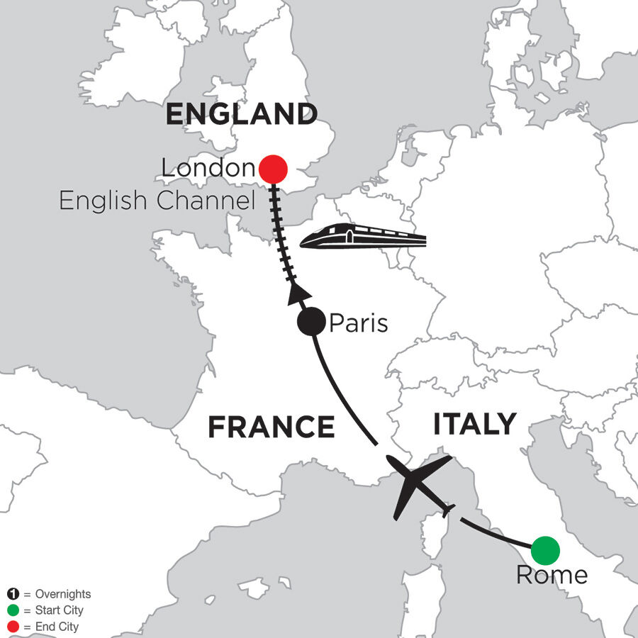 Some say, “Only Paris is worthy of Rome; only Rome is worthy of Paris.” At Monograms, we don’t agree entirely, because we think London is worthy of both! That’s why we’ve put together a vacation package with all three—Rome, Paris, and London. In fact, on this travel package, we’ve arranged your hotel reservations in all three cities, daily breakfast, sightseeing, transportation between cities, and transfers from/to your hotel to/from the train stations. Plus, a one-of-a-kind feature is the Monograms Local Host®, someone who is on hand throughout your stay to answer questions, arrange your activities, offer suggestions, and help maximize your vacation time. We’ve arranged for you to have a Local Host in Rome, Paris, and London.