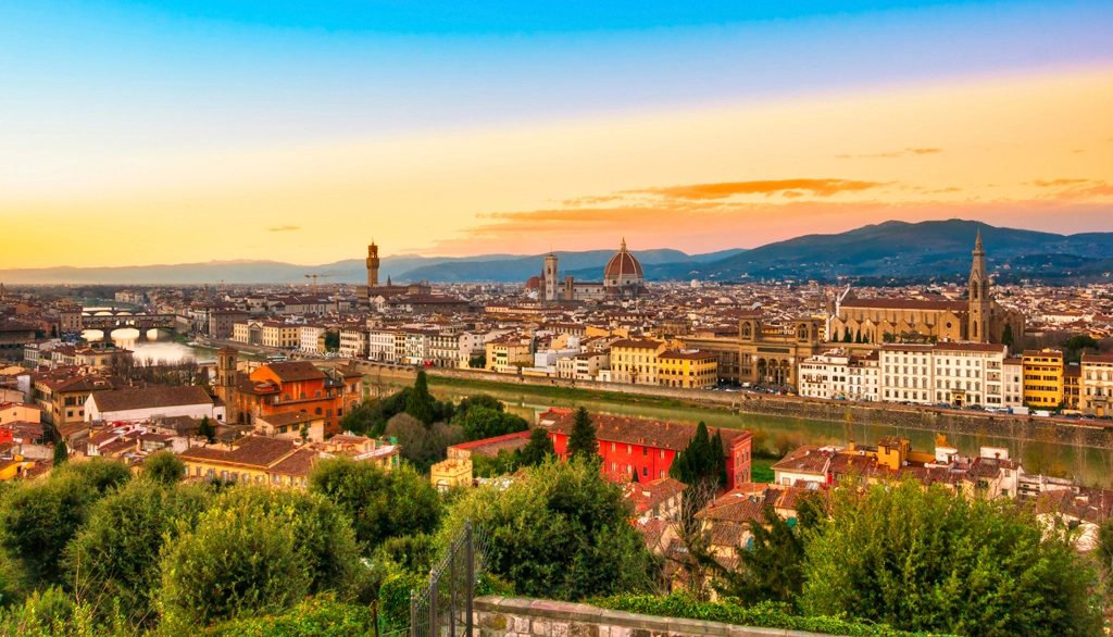 Board the HIGH-SPEED TRAIN and arrive in Florence. Follow your Local Guide for a walking tour through the historic center. Visit the ACADEMY OF FINE ARTS to admire Michelangelo’s David, see the Duomo, the Baptistry with the “Gate of Paradise,” and Giotto’s Bell Tower, visit sculpture-studded SIGNORIA SQUARE, and end at SANTA CROCE SQUARE, where Globus Local Favorite a special lunch with pizza, wine, and, of course, gelato awaits you at Finisterrae restaurant. Time to shop for leather and gold, for which the city is famous, before transferring to the railway station to return to Milan.